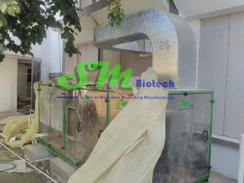 This system pasteurizes, conditions, and sprays water to protect mushrooms from infections originating from water sources.